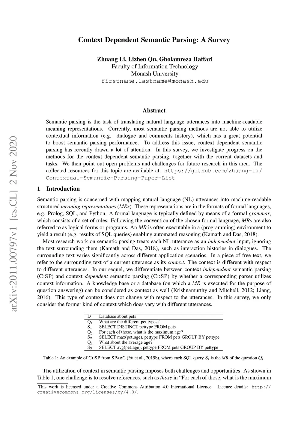 Context Dependent Semantic Parsing: A Survey