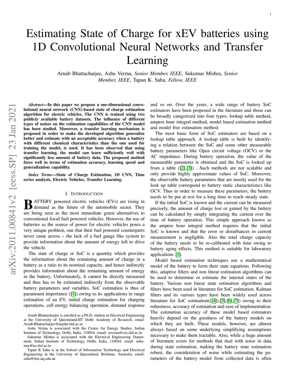 Estimating State of Charge for xEV batteries using 1D Convolutional