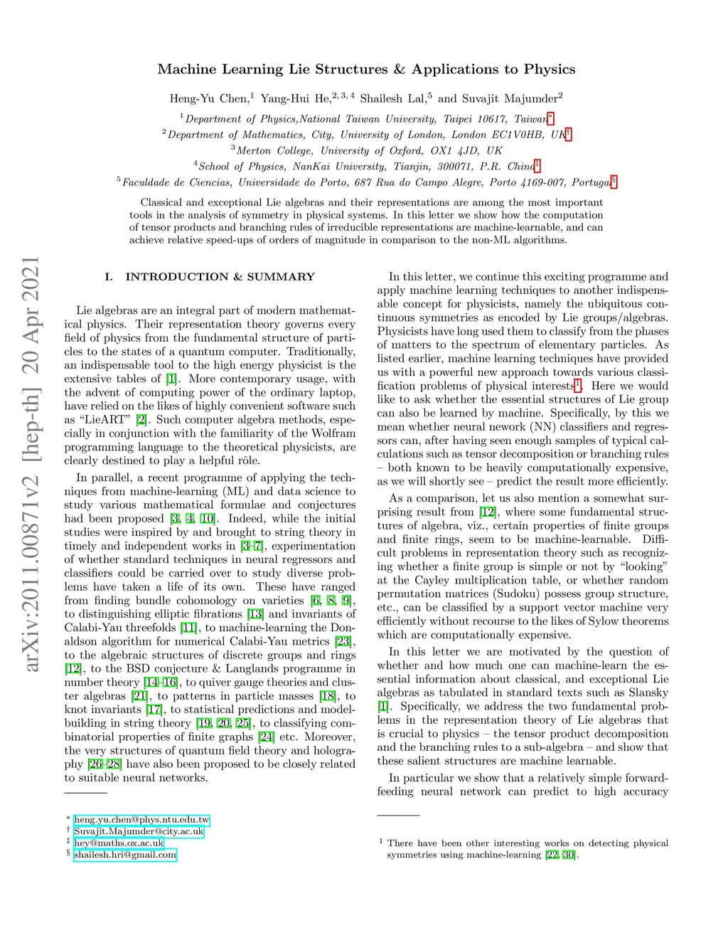 Machine Learning Lie Structures & Applications to Physics
