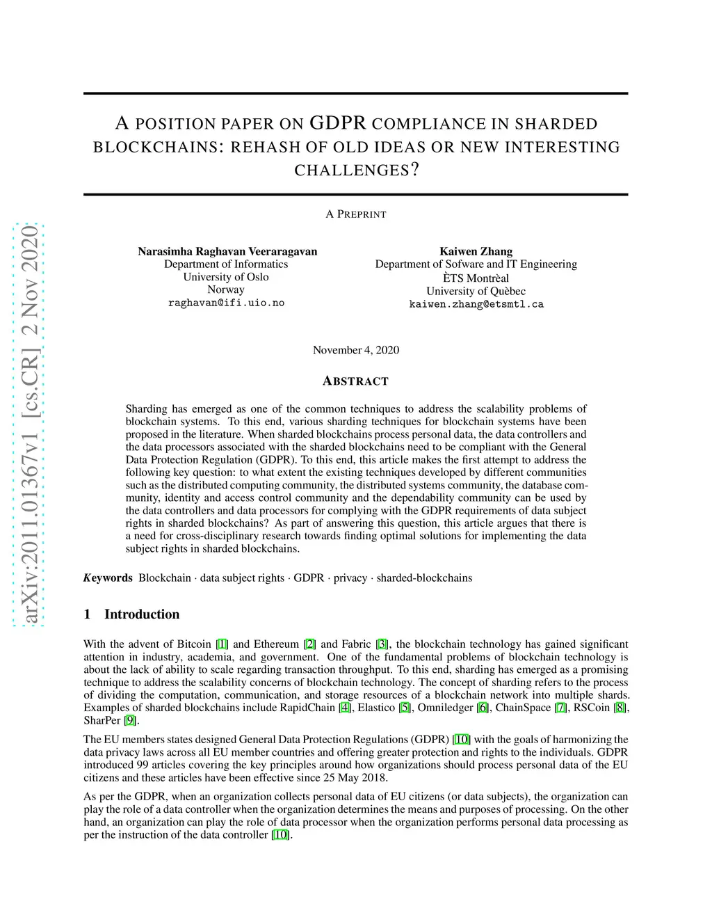 A position paper on GDPR compliance in sharded blockchains: rehash of