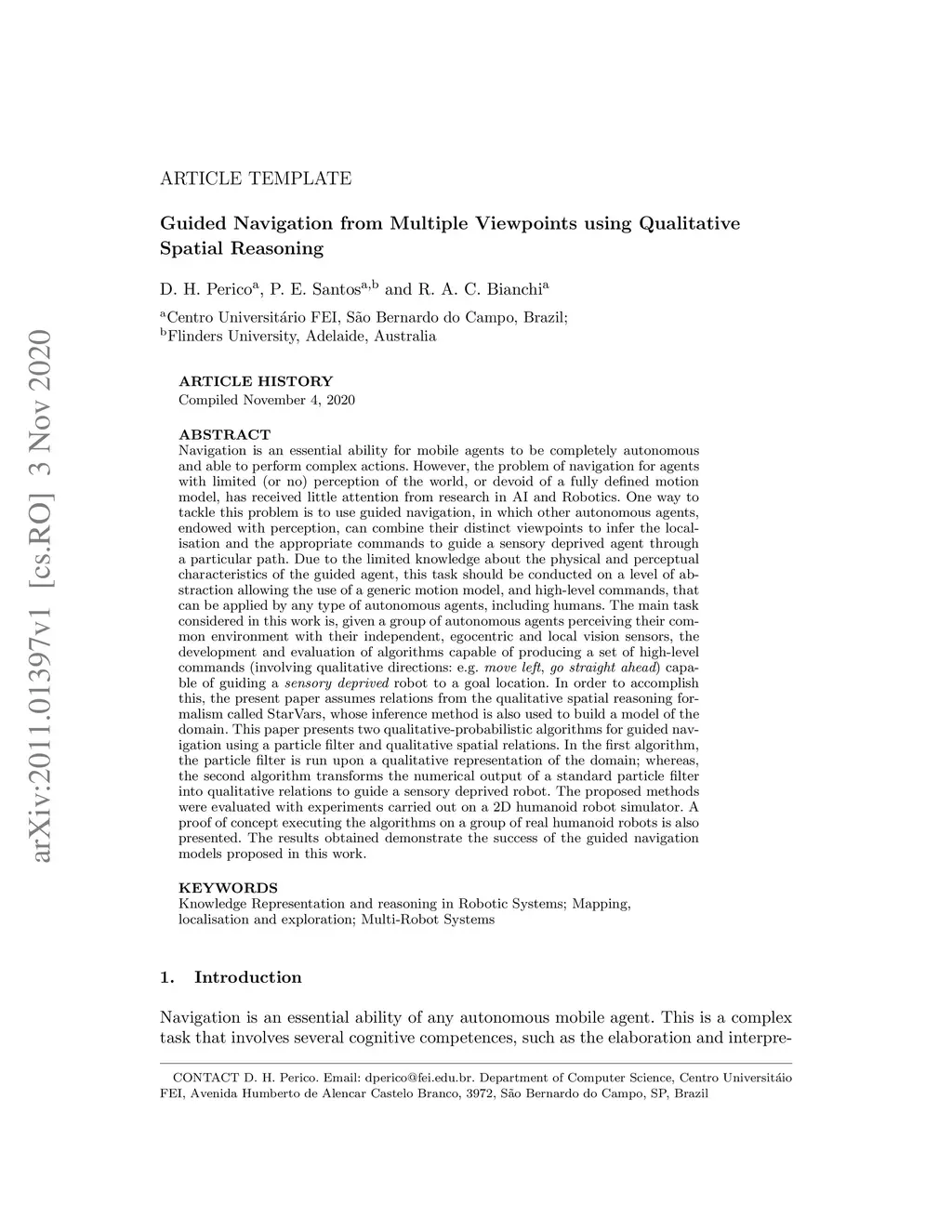 Navigation is an essential ability for mobile agents to be completely autonomous and able to perform complex actions. However, the problem of navigation for agents with limited (or no) perception of the world, or devoid of a fully defined motion model, has received little attention from research in AI and Robotics. One way to tackle this problem is to use guided navigation, in which other autonomous agents, endowed with perception, can combine their distinct viewpoints to infer the localisation and the appropriate commands to guide a sensory deprived agent through a particular path. Due to the limited knowledge about the physical and perceptual characteristics of the guided agent, this task should be conducted on a level of abstraction allowing the use of a generic motion model, and high-level commands, that can be applied by any type of autonomous agents, including humans. The main task considered in this work is, given a group of autonomous agents perceiving their common environment with their independent, egocentric and local vision sensors, the development and evaluation of algorithms capable of producing a set of high-level commands (involving qualitative directions: e.g. move left, go straight ahead) capable of guiding a sensory deprived robot to a goal location.