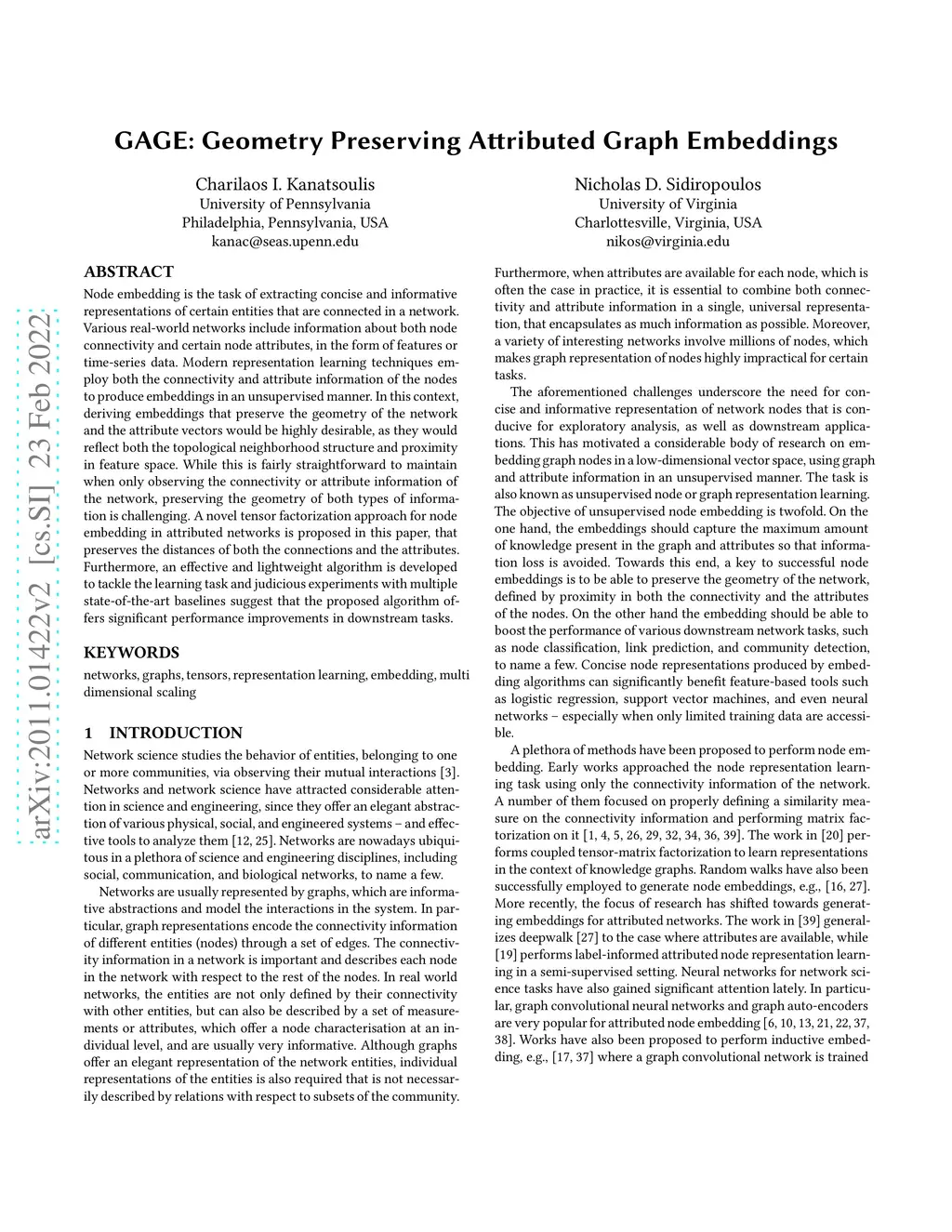GAGE: Geometry Preserving Attributed Graph Embeddings