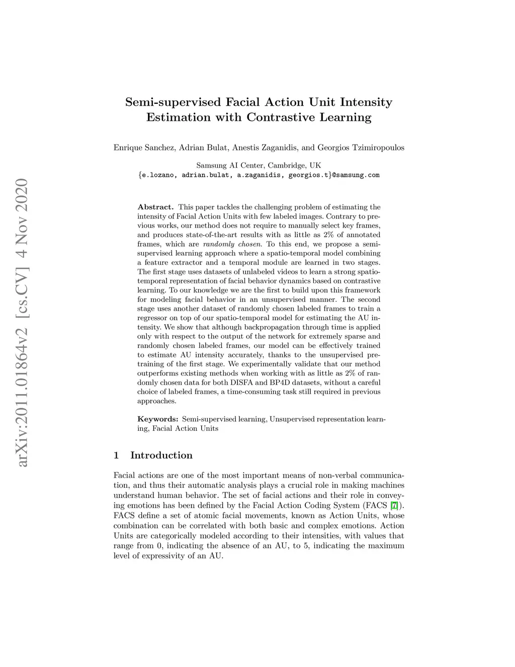 Semi-supervised Facial Action Unit Intensity Estimation with Contrastive