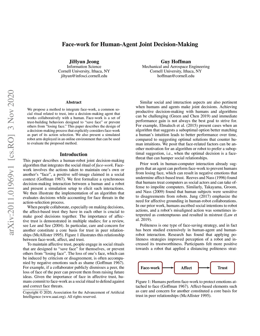 Face-work for Human-Agent Joint Decision-Making