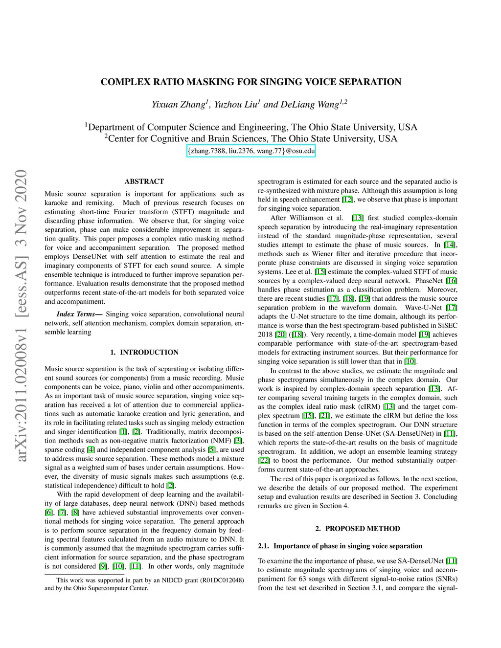 Complex ratio masking for singing voice separation