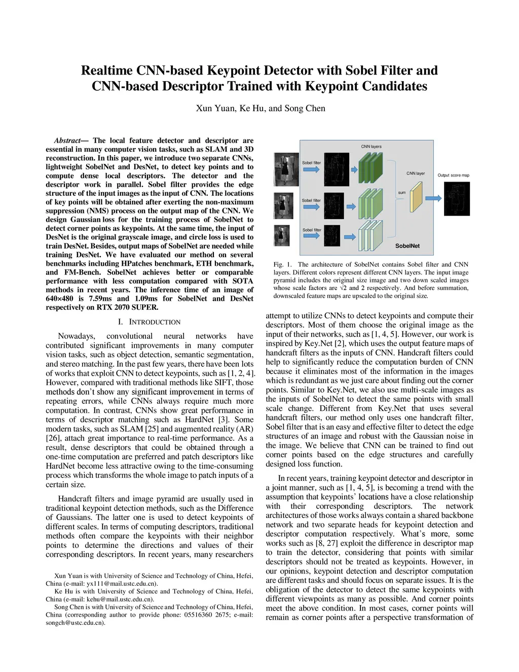 Realtime CNN-based Keypoint Detector with Sobel Filter and CNN-based