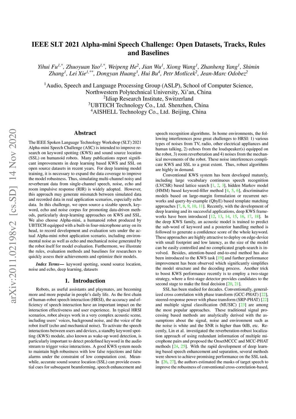 IEEE SLT 2021 Alpha-mini Speech Challenge: Open Datasets, Tracks, Rules