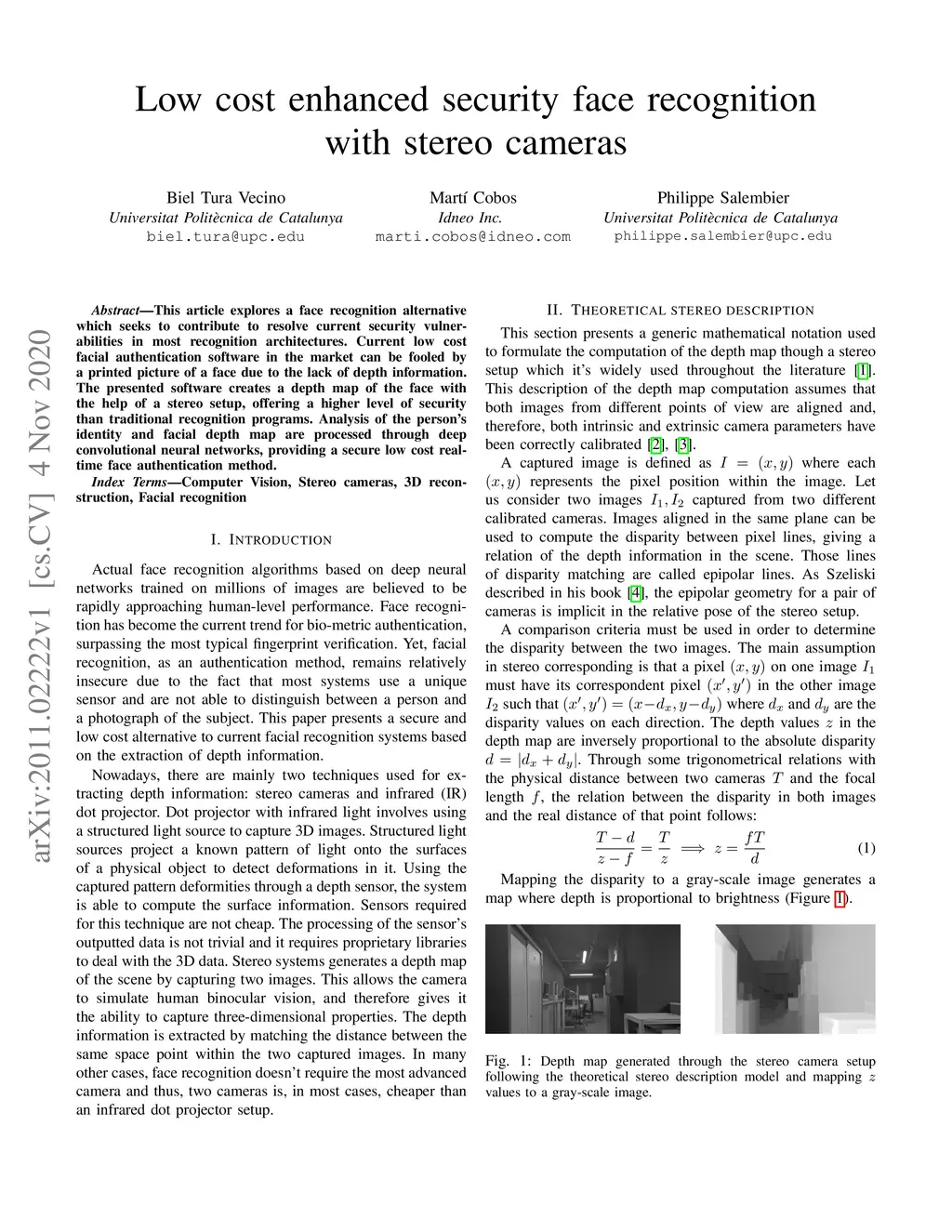 This article explores a face recognition alternative which seeks to contribute to resolve current security vulnerabilities in most recognition architectures. Current low cost facial authentication software in the market can be fooled by a printed picture of a face due to the lack of depth information. The presented software creates a depth map of the face with the help of a stereo setup, offering a higher level of security than traditional recognition programs. Analysis of the person's identity and facial depth map are processed through deep convolutional neural networks, providing a secure low cost real-time face authentication method.