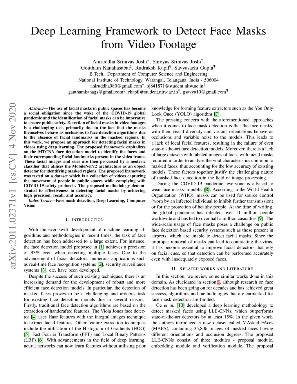Deep Learning Framework to Detect Face Masks from Video Footage