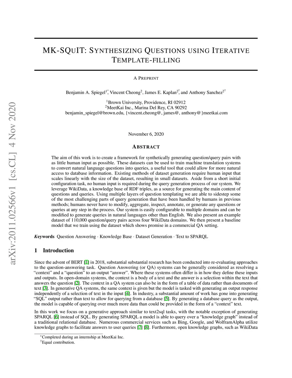 MK-SQuIT: Synthesizing Questions using Iterative Template-filling