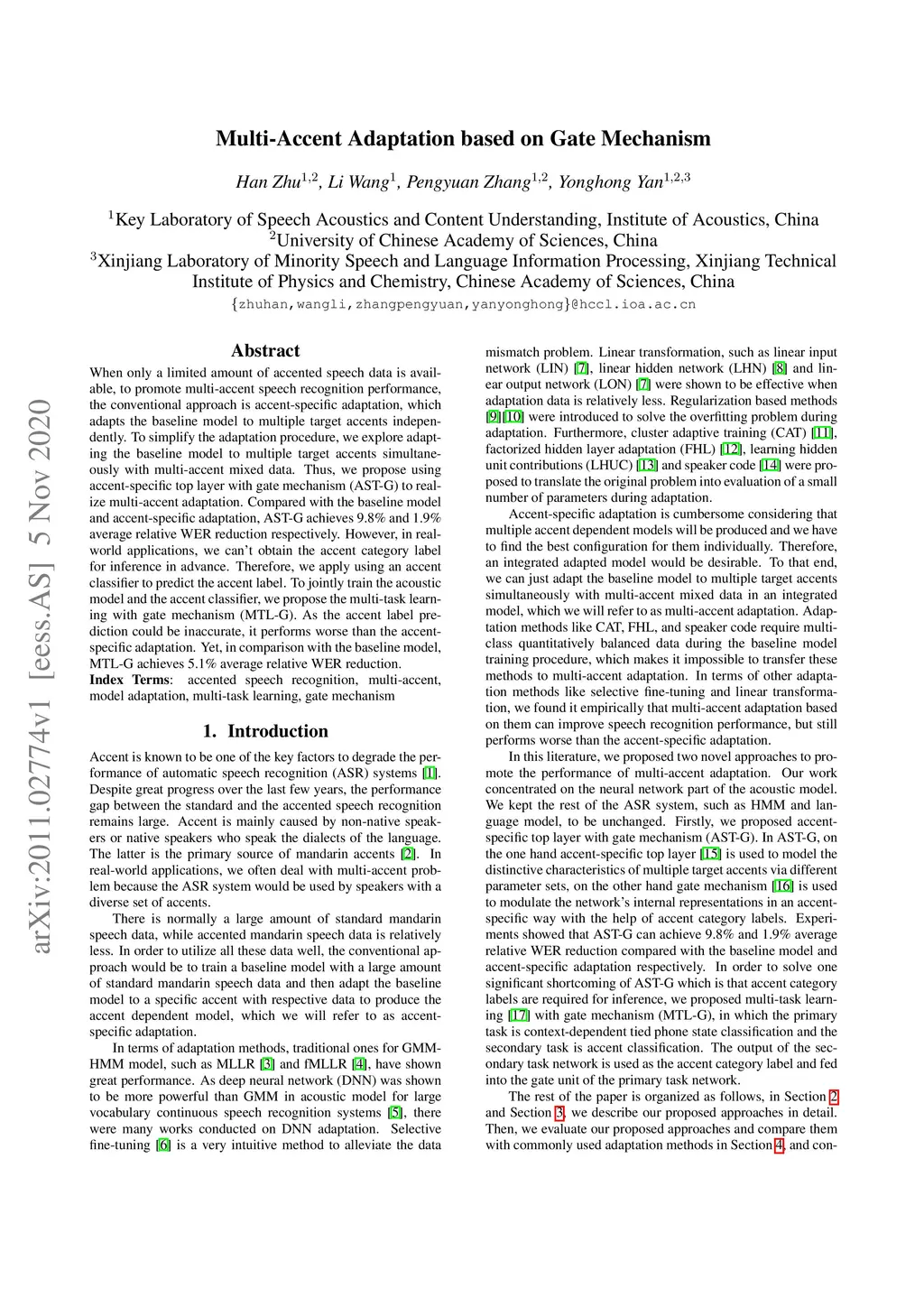 Multi-Accent Adaptation based on Gate Mechanism