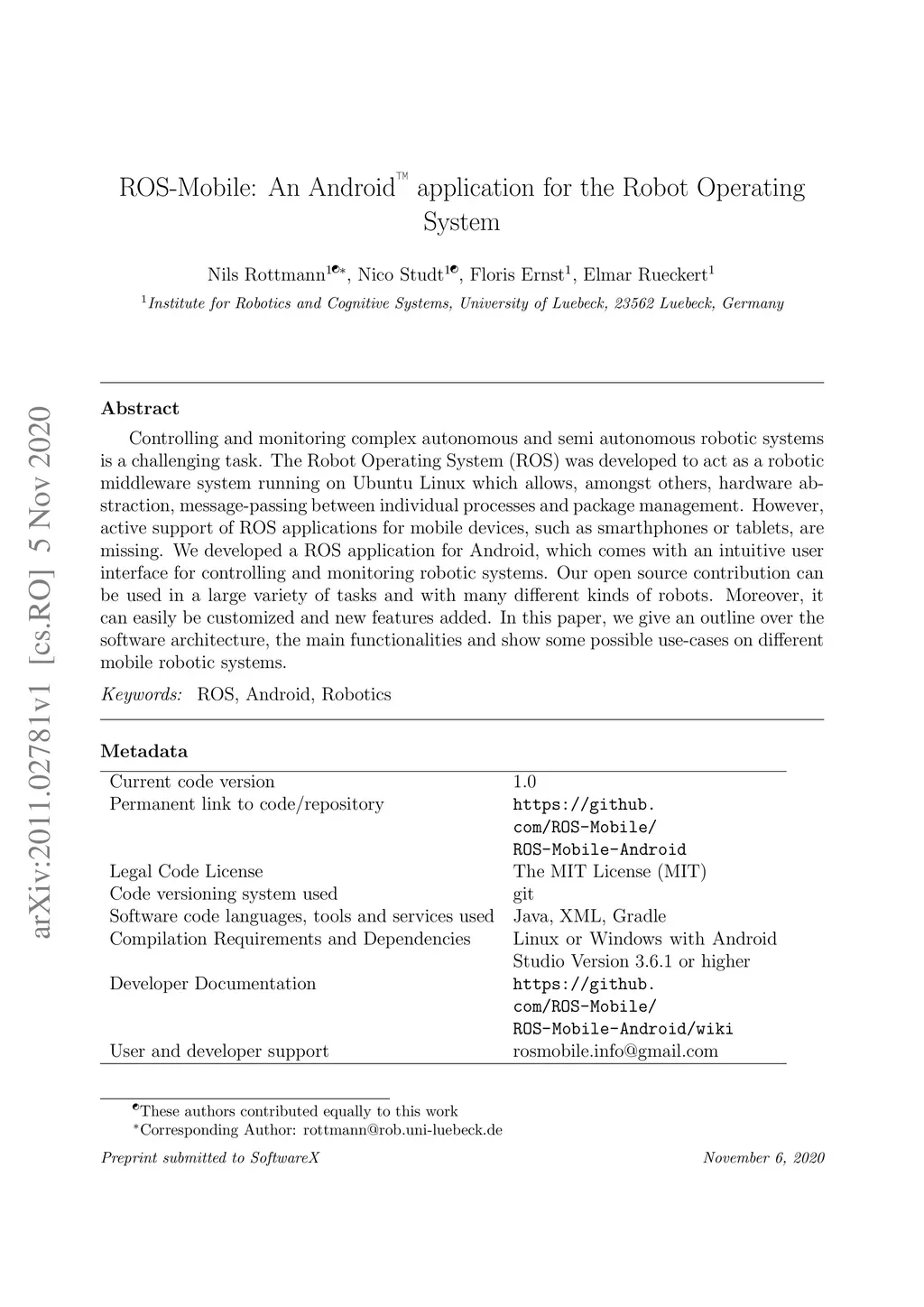 Controlling and monitoring complex autonomous and semi autonomous robotic systems is a challenging task. The Robot Operating System (ROS) was developed to act as a robotic middleware system running on Ubuntu Linux which allows, amongst others, hardware abstraction, message-passing between individual processes and package management. However, active support of ROS applications for mobile devices, such as smarthphones or tablets, are missing. We developed a ROS application for Android, which comes with an intuitive user interface for controlling and monitoring robotic systems. Our open source contribution can be used in a large variety of tasks and with many different kinds of robots. Moreover, it can easily be customized and new features added. In this paper, we give an outline over the software architecture, the main functionalities and show some possible use-cases on different mobile robotic systems.