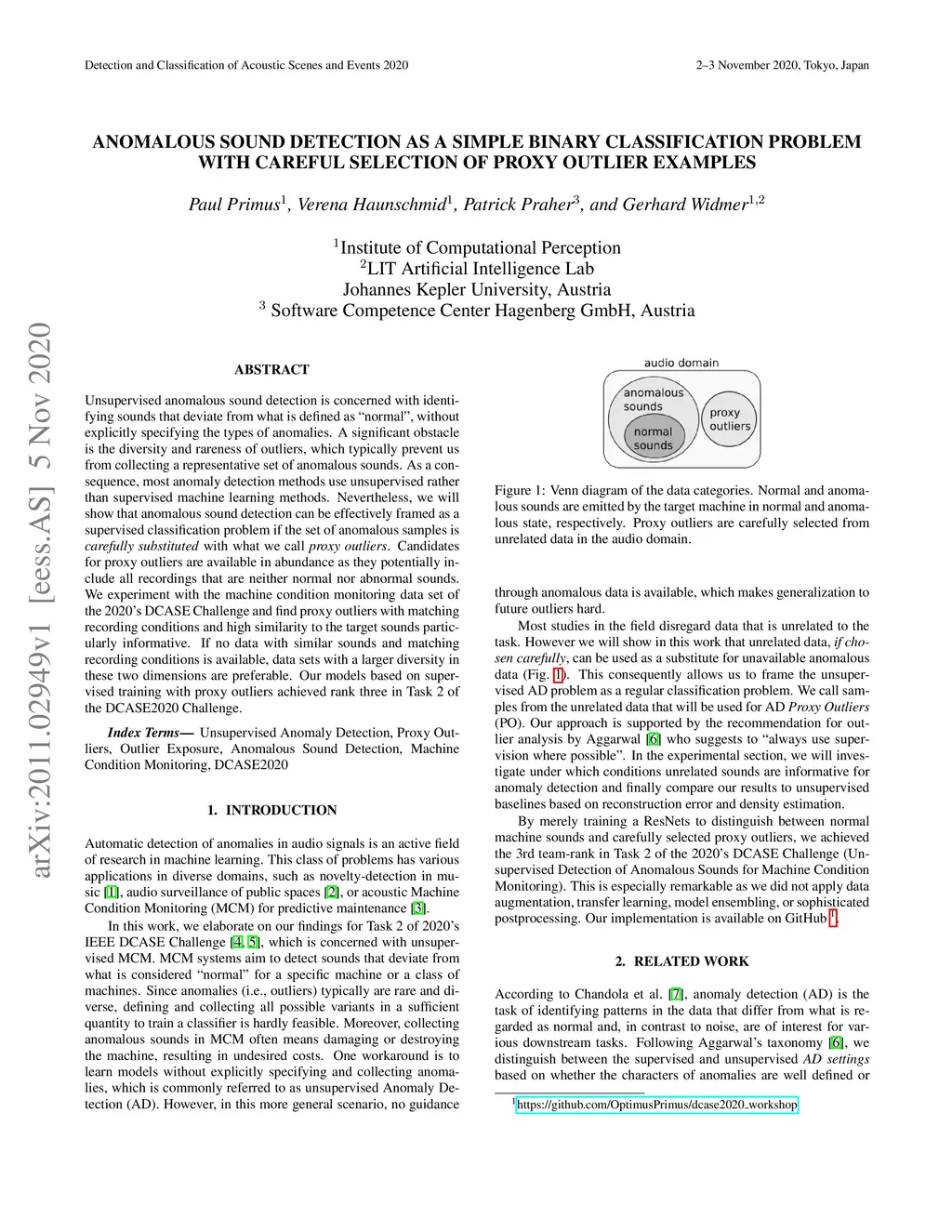 Unsupervised anomalous sound detection is concerned with identifying sounds that deviate from what is defined as ñormal', without explicitly specifying the types of anomalies. A significant obstacle is the diversity and rareness of outliers, which typically prevent us from collecting a representative set of anomalous sounds. As a consequence, most anomaly detection methods use unsupervised rather than supervised machine learning methods. Nevertheless, we will show that anomalous sound detection can be effectively framed as a supervised classification problem if the set of anomalous samples is carefully substituted with what we call proxy outliers. Candidates for proxy outliers are available in abundance as they potentially include all recordings that are neither normal nor abnormal sounds. We experiment with the machine condition monitoring data set of the 2020's DCASE Challenge and find proxy outliers with matching recording conditions and high similarity to the target sounds particularly informative. If no data with similar sounds and matching recording conditions is available, data sets with a larger diversity in these two dimensions are preferable. Our models based on supervised training with proxy outliers achieved rank three in Task 2 of the DCASE2020 Challenge.