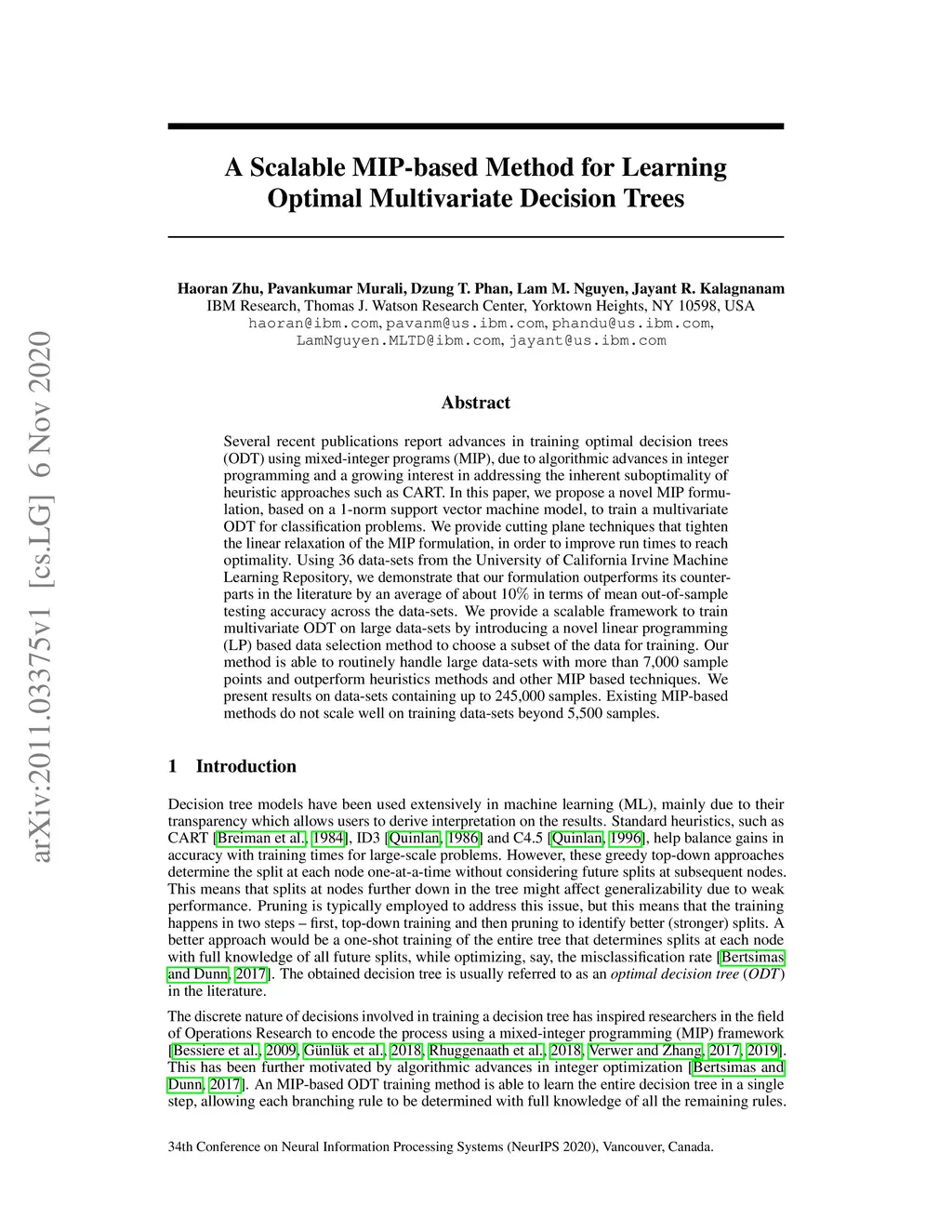 A Scalable MIP-based Method for Learning Optimal Multivariate Decision