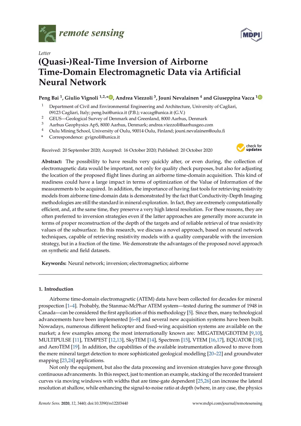 The possibility to have results very quickly after, or even during, the collection of electromagnetic data would be important, not only for quality check purposes, but also for adjusting the location of the proposed flight lines during an airborne time-domain acquisition. This kind of readiness could have a large impact in terms of optimization of the Value of Information of the measurements to be acquired. In addition, the importance of having fast tools for retrieving resistivity models from airborne time-domain data is demonstrated by the fact that Conductivity-Depth Imaging methodologies are still the standard in mineral exploration. In fact, they are extremely computationally efficient, and, at the same time, they preserve a very high lateral resolution. For these reasons, they are often preferred to inversion strategies even if the latter approaches are generally more accurate in terms of proper reconstruction of the depth of the targets and of reliable retrieval of true resistivity values of the subsurface. In this research, we discuss a novel approach, based on neural network techniques, capable of retrieving resistivity models with a quality comparable with the inversion strategy, but in a fraction of the time. We demonstrate the advantages of the proposed novel approach on synthetic and field datasets.
