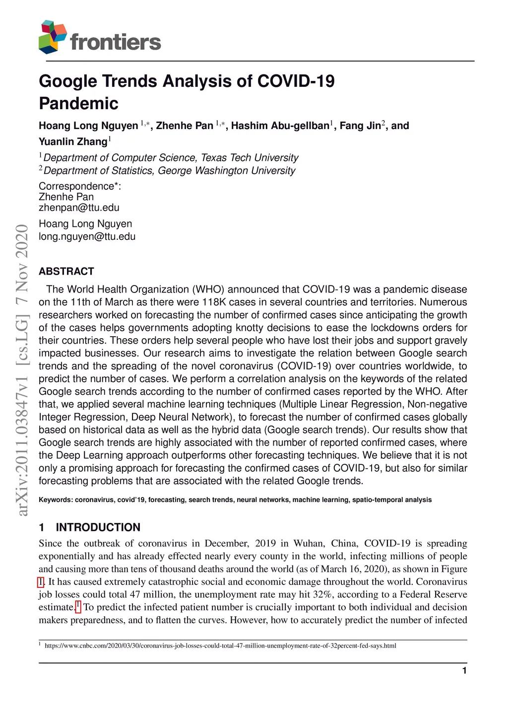 The World Health Organization (WHO) announced that COVID-19 was a pandemic disease on the 11th of March as there were 118K cases in several countries and territories. Numerous researchers worked on forecasting the number of confirmed cases since anticipating the growth of the cases helps governments adopting knotty decisions to ease the lockdowns orders for their countries. These orders help several people who have lost their jobs and support gravely impacted businesses. Our research aims to investigate the relation between Google search trends and the spreading of the novel coronavirus (COVID-19) over countries worldwide, to predict the number of cases. We perform a correlation analysis on the keywords of the related Google search trends according to the number of confirmed cases reported by the WHO. After that, we applied several machine learning techniques (Multiple Linear Regression, Non-negative Integer Regression, Deep Neural Network), to forecast the number of confirmed cases globally based on historical data as well as the hybrid data (Google search trends). Our results show that Google search trends are highly associated with the number of reported confirmed cases, where the Deep Learning approach outperforms other forecasting techniques. We believe that it is not only a promising approach for forecasting the confirmed cases of COVID-19, but also for similar forecasting problems that are associated with the related Google trends.