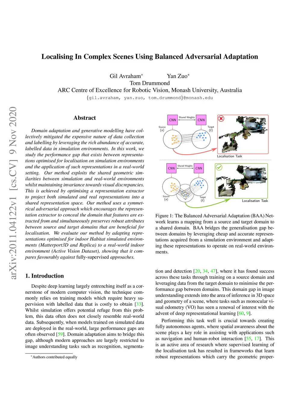 Localising In Complex Scenes Using Balanced Adversarial Adaptation