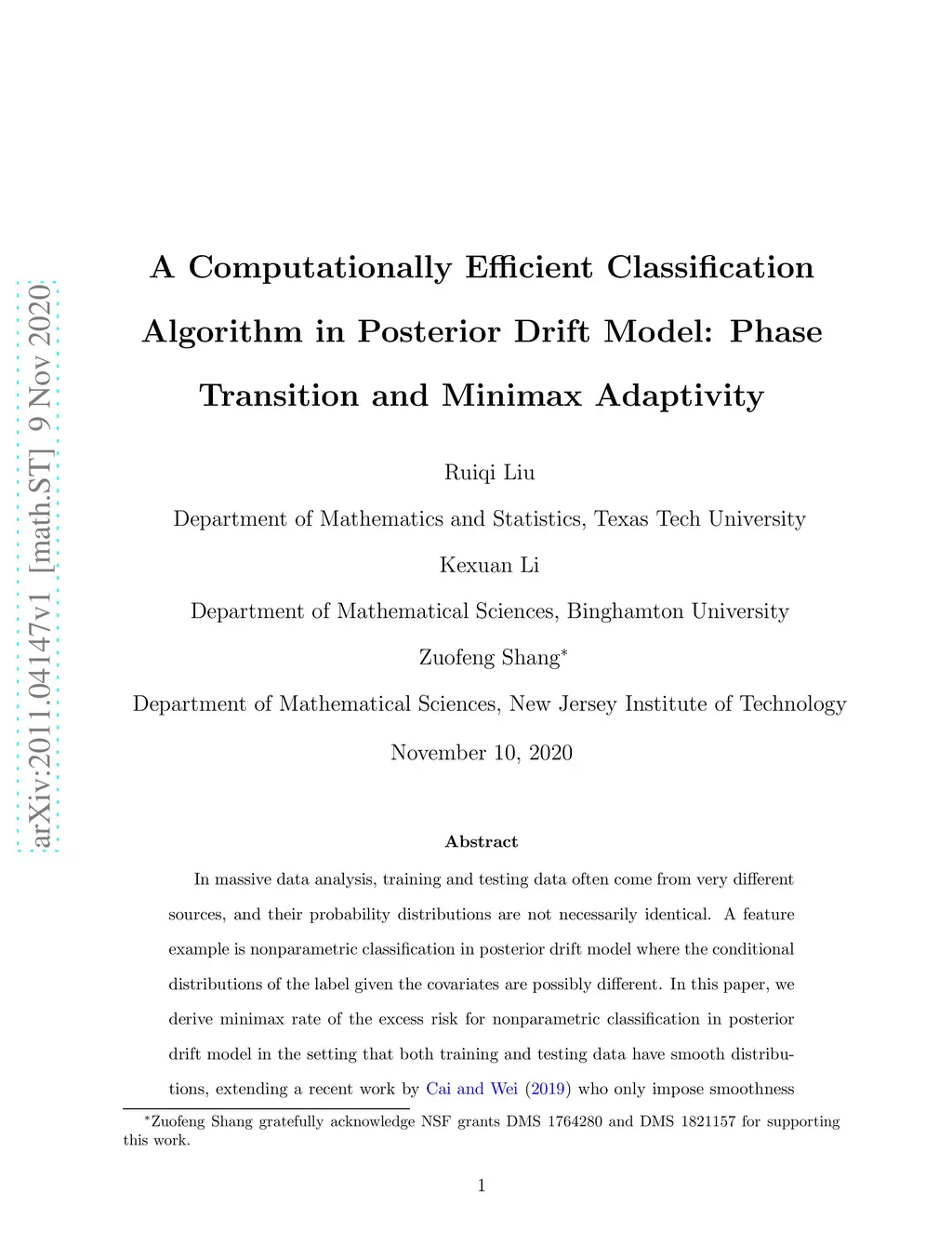 A Computationally Efficient Classification Algorithm in Posterior Drift