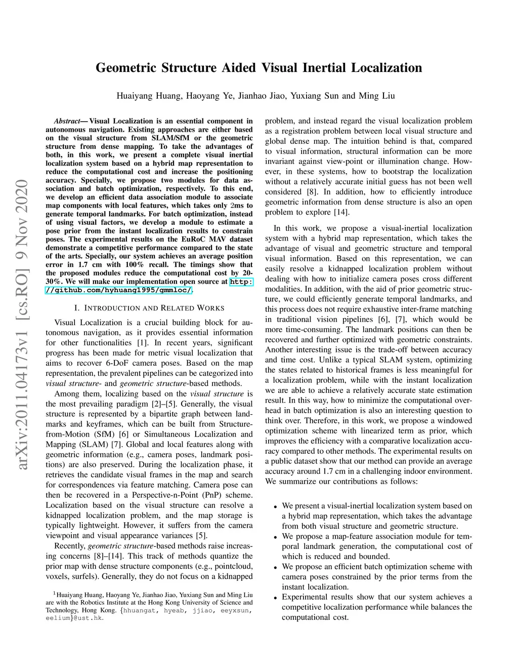 Geometric Structure Aided Visual Inertial Localization