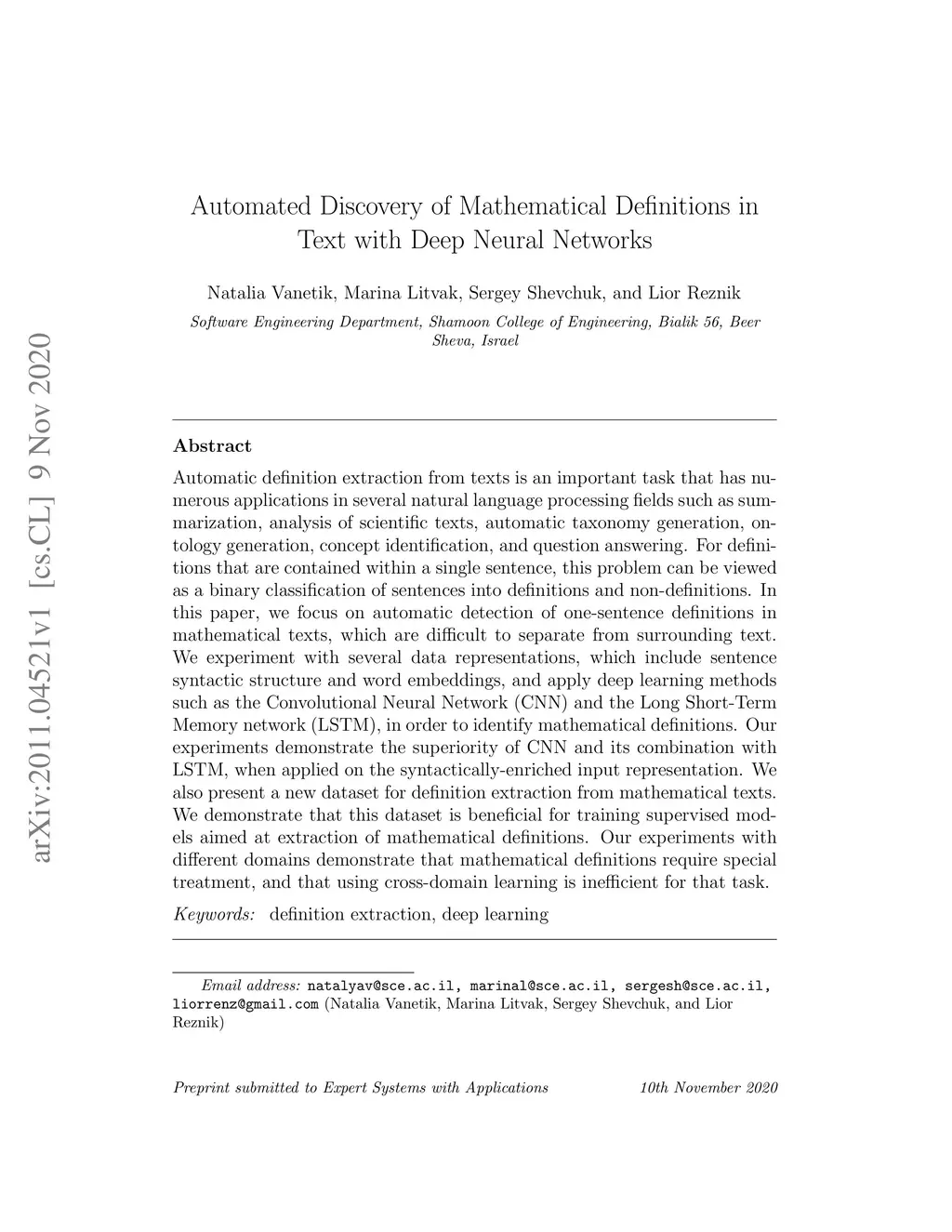 Automated Discovery of Mathematical Definitions in Text with Deep Neural