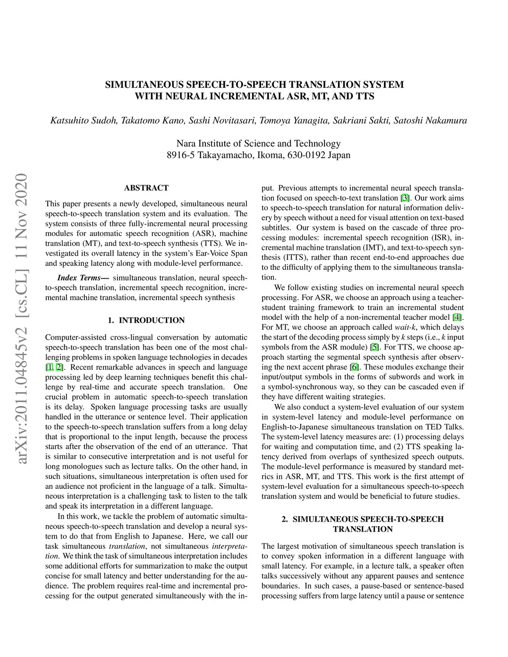 Simultaneous Speech-to-Speech Translation System with Neural Incremental