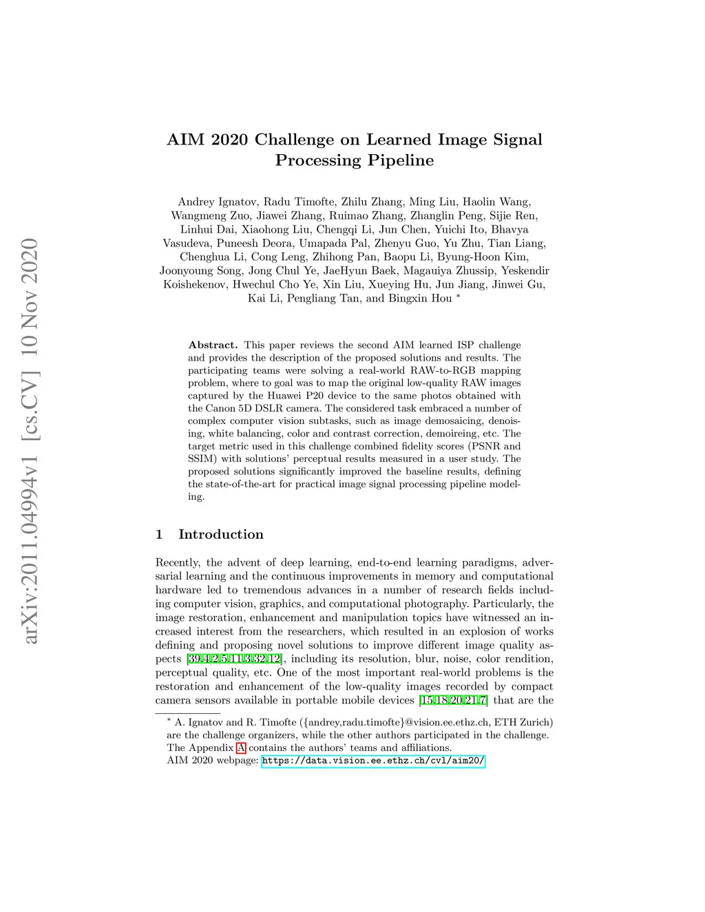 AIM 2020 Challenge on Learned Image Signal Processing Pipeline