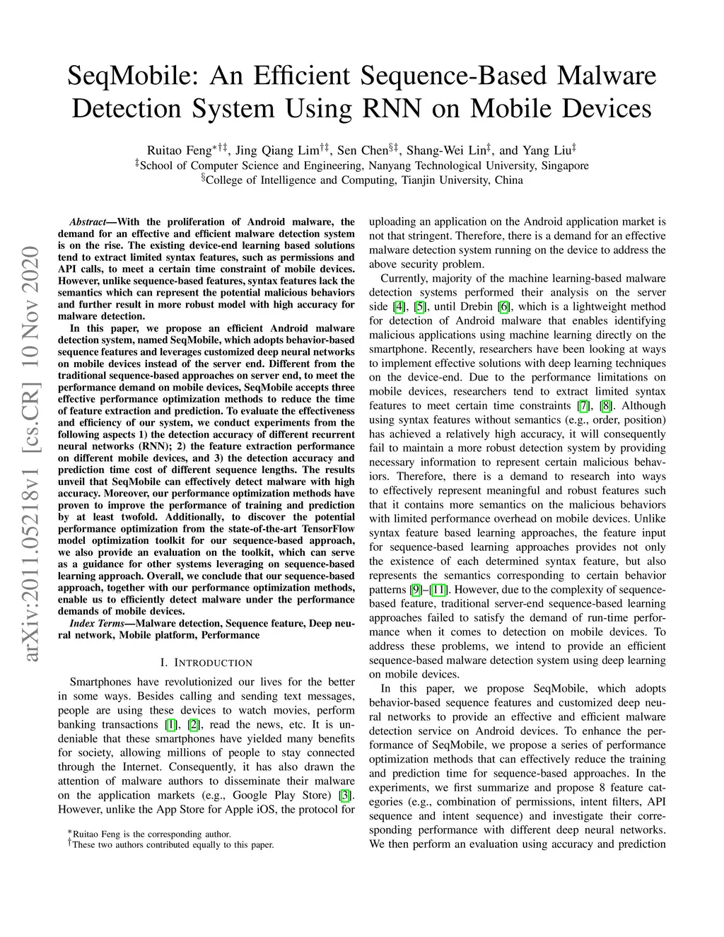 SeqMobile: A Sequence Based Efficient Android Malware Detection System