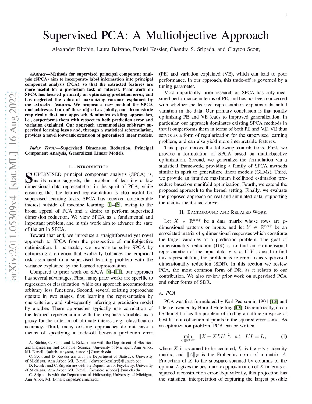 Supervised PCA: A Multiobjective Approach