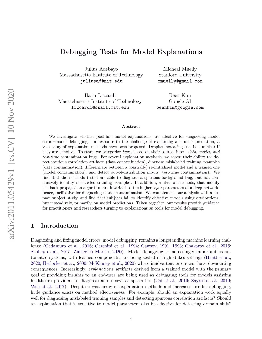 We investigate whether post-hoc model explanations are effective for diagnosing model errors--model debugging. In response to the challenge of explaining a model's prediction, a vast array of explanation methods have been proposed. Despite increasing use, it is unclear if they are effective. To start, we categorize \textit{bugs}, based on their source, into:~\textit{data, model, and test-time} contamination bugs. For several explanation methods, we assess their ability to: detect spurious correlation artifacts (data contamination), diagnose mislabeled training examples (data contamination), differentiate between a (partially) re-initialized model and a trained one (model contamination), and detect out-of-distribution inputs (test-time contamination). We find that the methods tested are able to diagnose a spurious background bug, but not conclusively identify mislabeled training examples. In addition, a class of methods, that modify the back-propagation algorithm are invariant to the higher layer parameters of a deep network; hence, ineffective for diagnosing model contamination. We complement our analysis with a human subject study, and find that subjects fail to identify defective models using attributions, but instead rely, primarily, on model predictions. Taken together, our results provide guidance for practitioners and researchers turning to explanations as tools for model debugging.