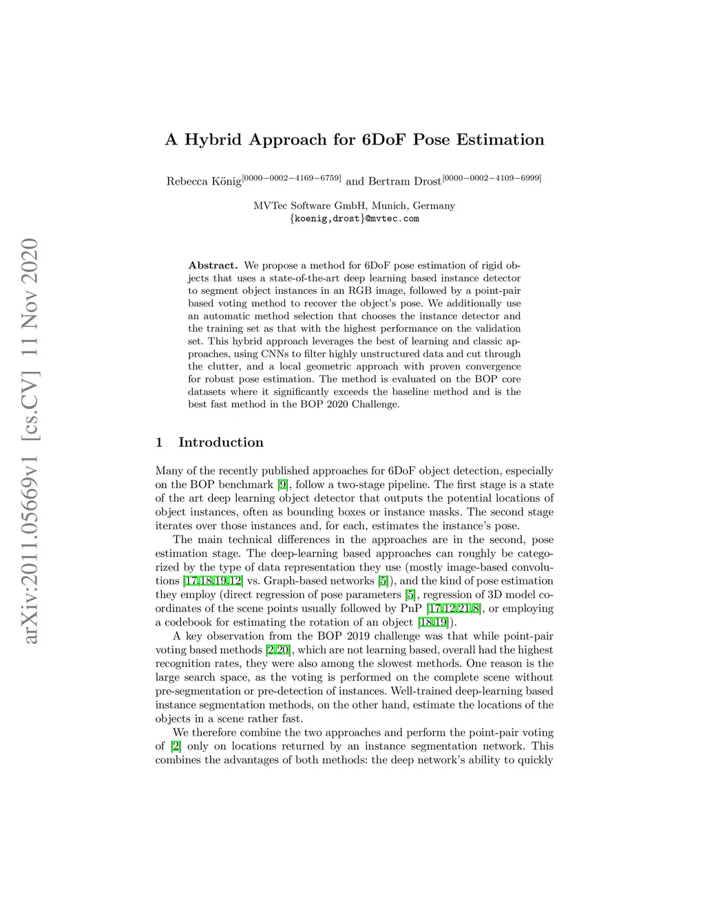 We propose a method for 6DoF pose estimation of rigid objects that uses a state-of-the-art deep learning based instance detector to segment object instances in an RGB image, followed by a point-pair based voting method to recover the object's pose. We additionally use an automatic method selection that chooses the instance detector and the training set as that with the highest performance on the validation set. This hybrid approach leverages the best of learning and classic approaches, using CNNs to filter highly unstructured data and cut through the clutter, and a local geometric approach with proven convergence for robust pose estimation. The method is evaluated on the BOP core datasets where it significantly exceeds the baseline method and is the best fast method in the BOP 2020 Challenge.