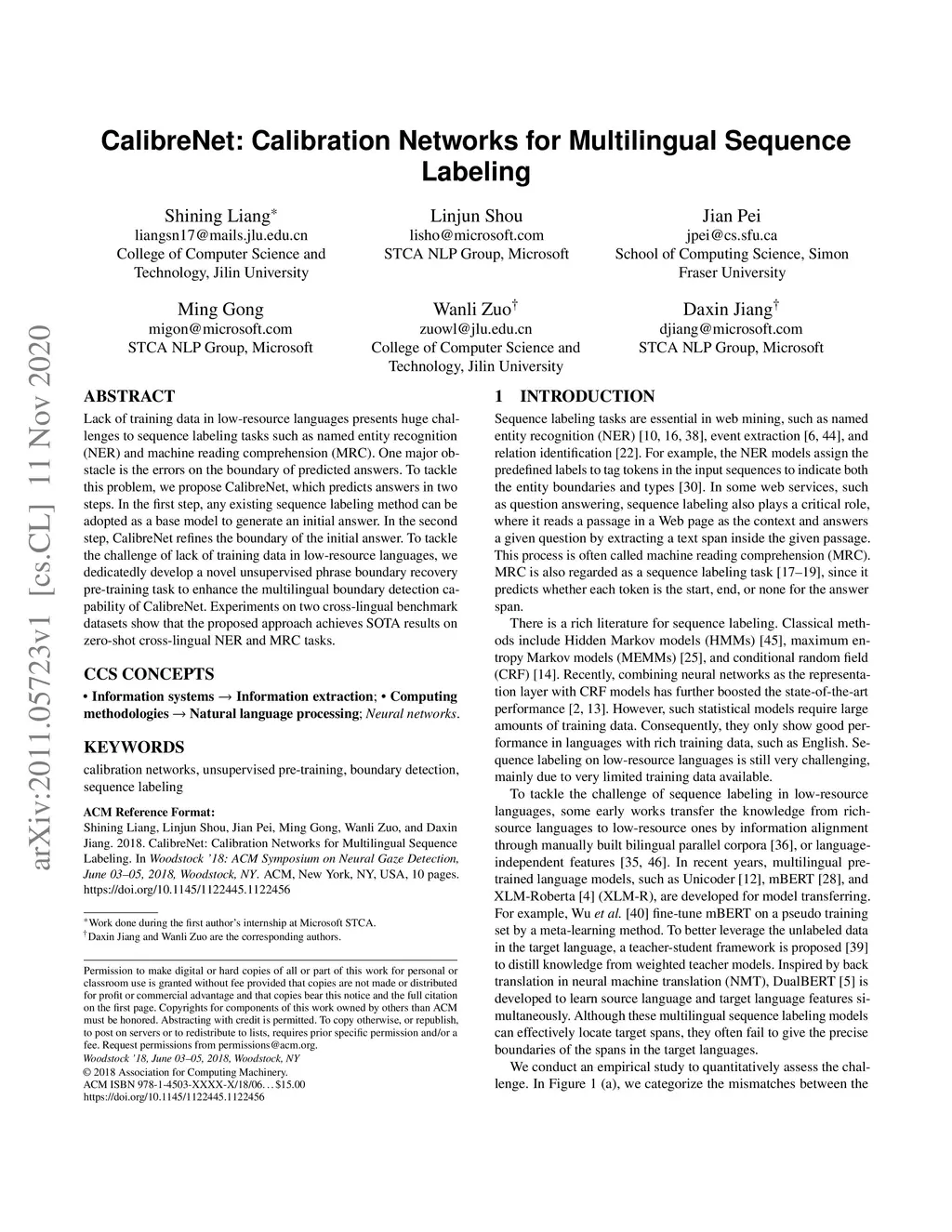 CalibreNet: Calibration Networks for Multilingual Sequence Labeling