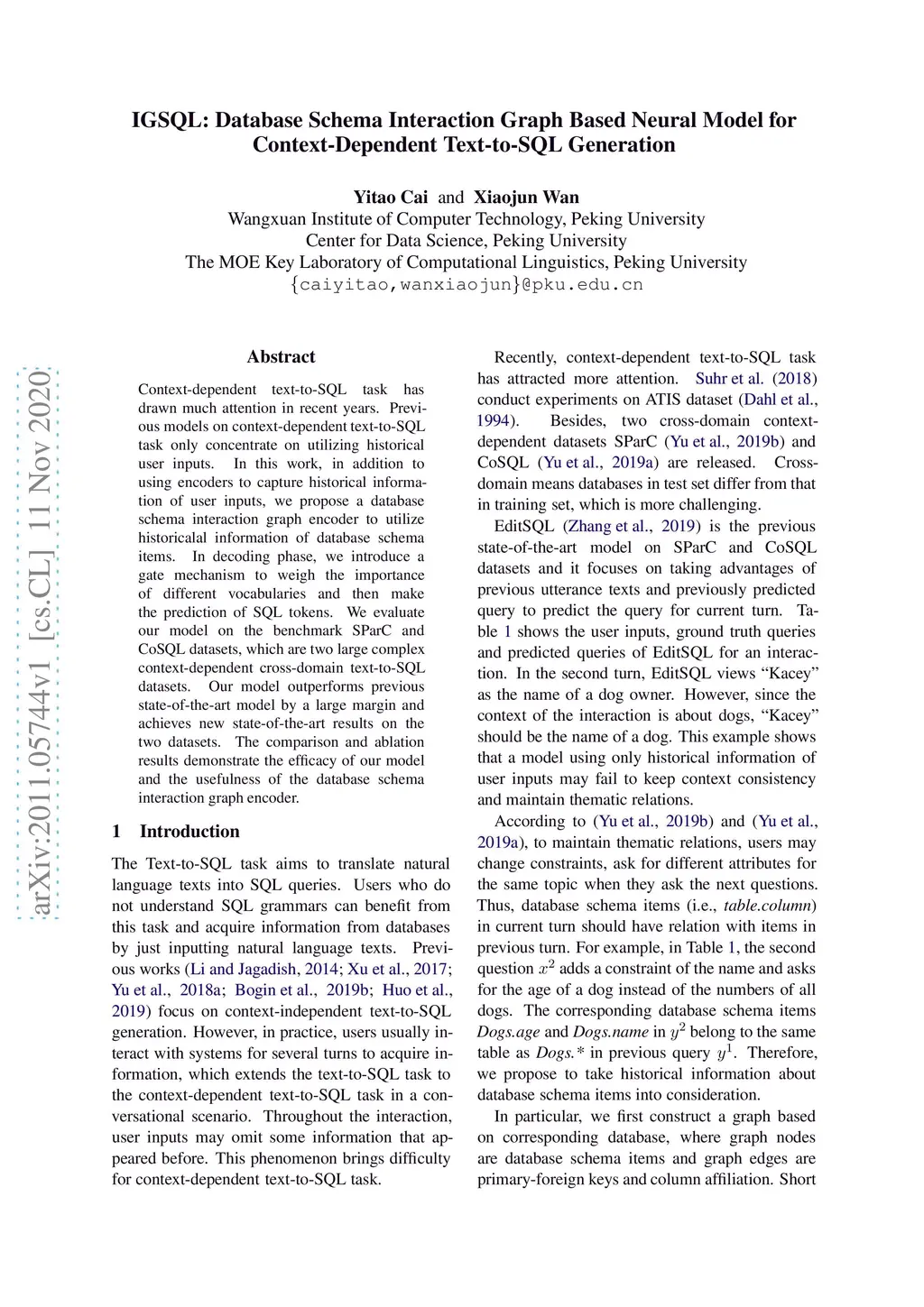 IGSQL: Database Schema Interaction Graph Based Neural Model for