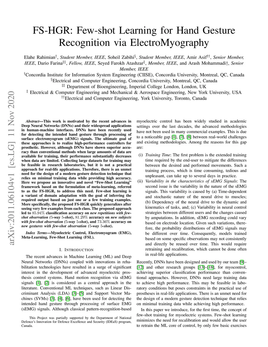 FS-HGR: Few-shot Learning for Hand Gesture Recognition via