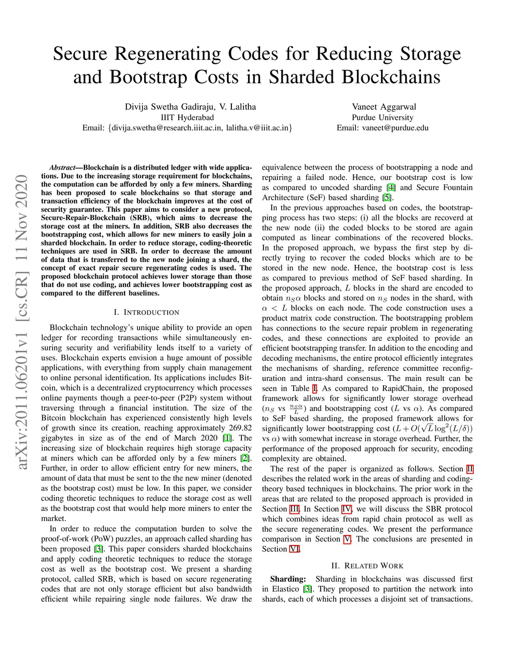 Blockchain is a distributed ledger with wide applications. Due to the increasing storage requirement for blockchains, the computation can be afforded by only a few miners. Sharding has been proposed to scale blockchains so that storage and transaction efficiency of the blockchain improves at the cost of security guarantee. This paper aims to consider a new protocol, Secure-Repair-Blockchain (SRB), which aims to decrease the storage cost at the miners. In addition, SRB also decreases the bootstrapping cost, which allows for new miners to easily join a sharded blockchain. In order to reduce storage, coding-theoretic techniques are used in SRB. In order to decrease the amount of data that is transferred to the new node joining a shard, the concept of exact repair secure regenerating codes is used. The proposed blockchain protocol achieves lower storage than those that do not use coding, and achieves lower bootstrapping cost as compared to the different baselines.