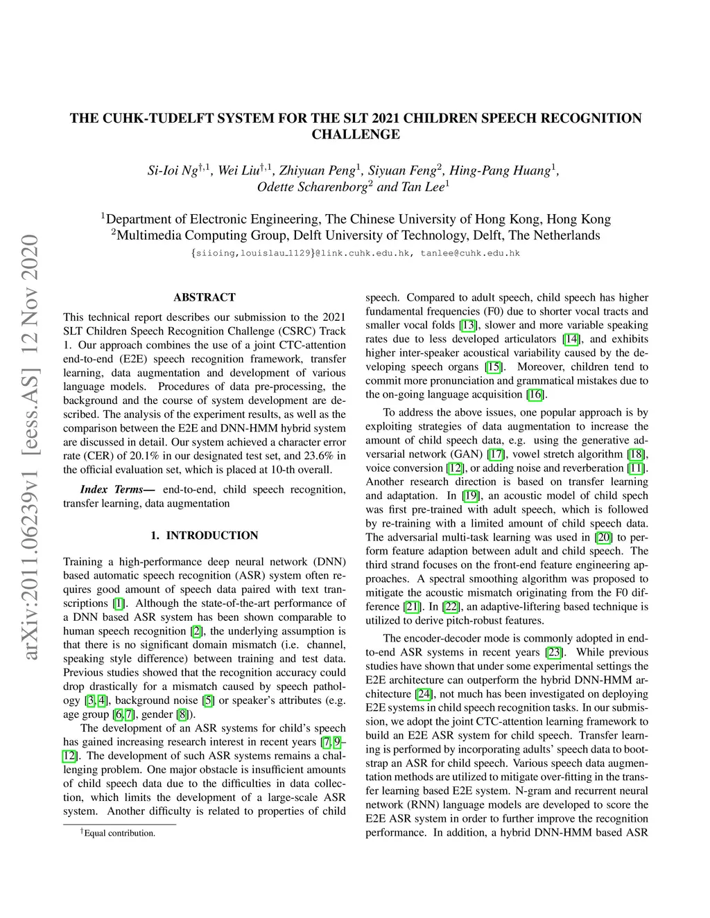 The CUHK-TUDELFT System for The SLT 2021 Children Speech Recognition