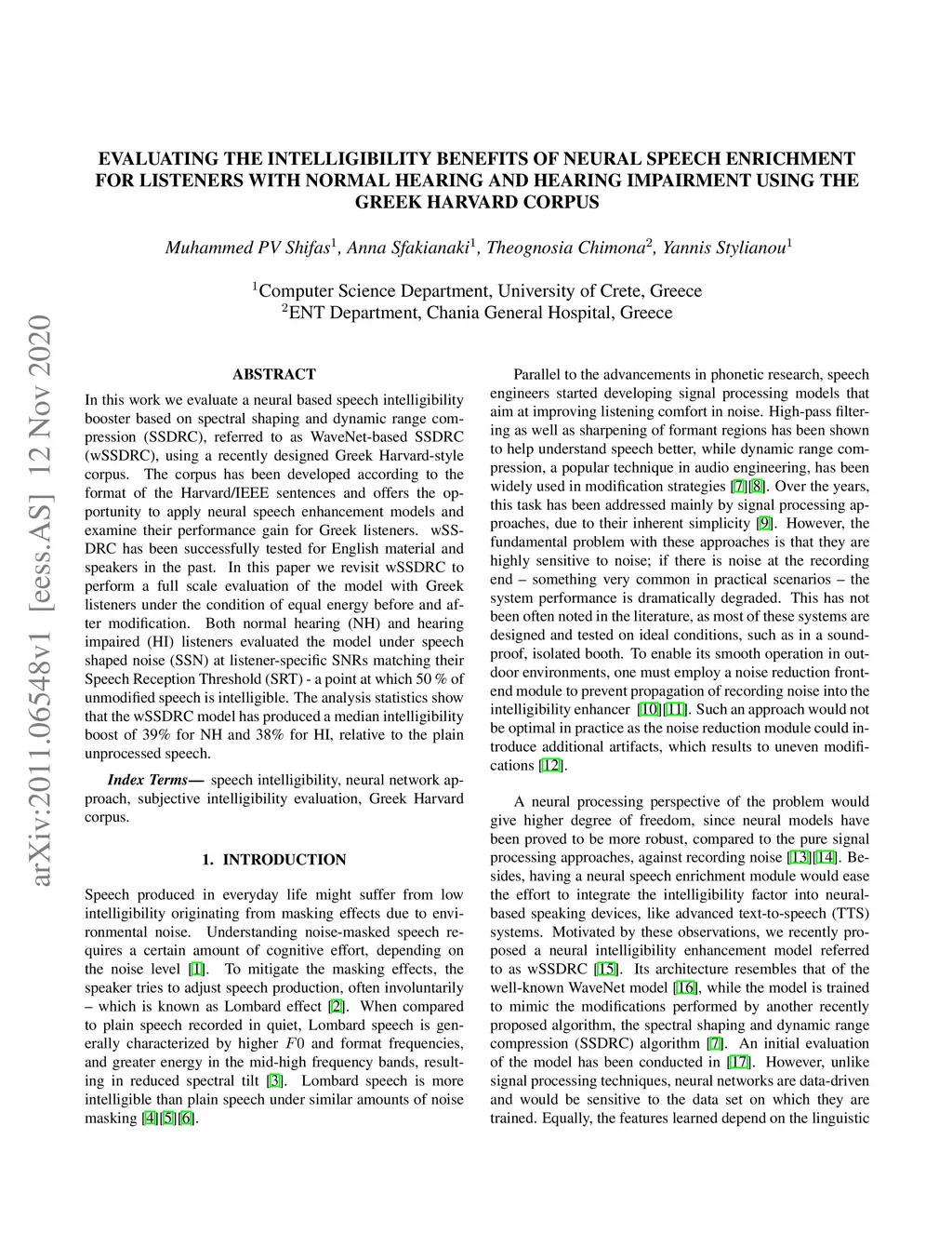 Listeners with Normal Hearing and Hearing Impairment using the Greek Harvard