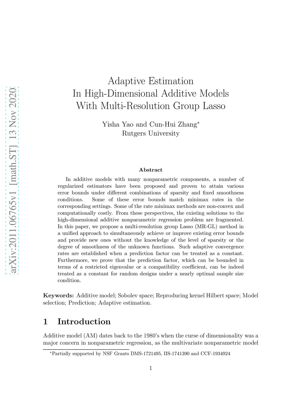 In additive models with many nonparametric components, a number of regularized estimators have been proposed and proven to attain various error bounds under different combinations of sparsity and fixed smoothness conditions. Some of these error bounds match minimax rates in the corresponding settings. Some of the rate minimax methods are non-convex and computationally costly. From these perspectives, the existing solutions to the high-dimensional additive nonparametric regression problem are fragmented. In this paper, we propose a multi-resolution group Lasso (MR-GL) method in a unified approach to simultaneously achieve or improve existing error bounds and provide new ones without the knowledge of the level of sparsity or the degree of smoothness of the unknown functions. Such adaptive convergence rates are established when a prediction factor can be treated as a constant. Furthermore, we prove that the prediction factor, which can be bounded in terms of a restricted eigenvalue or a compatibility coefficient, can be indeed treated as a constant for random designs under a nearly optimal sample size condition.