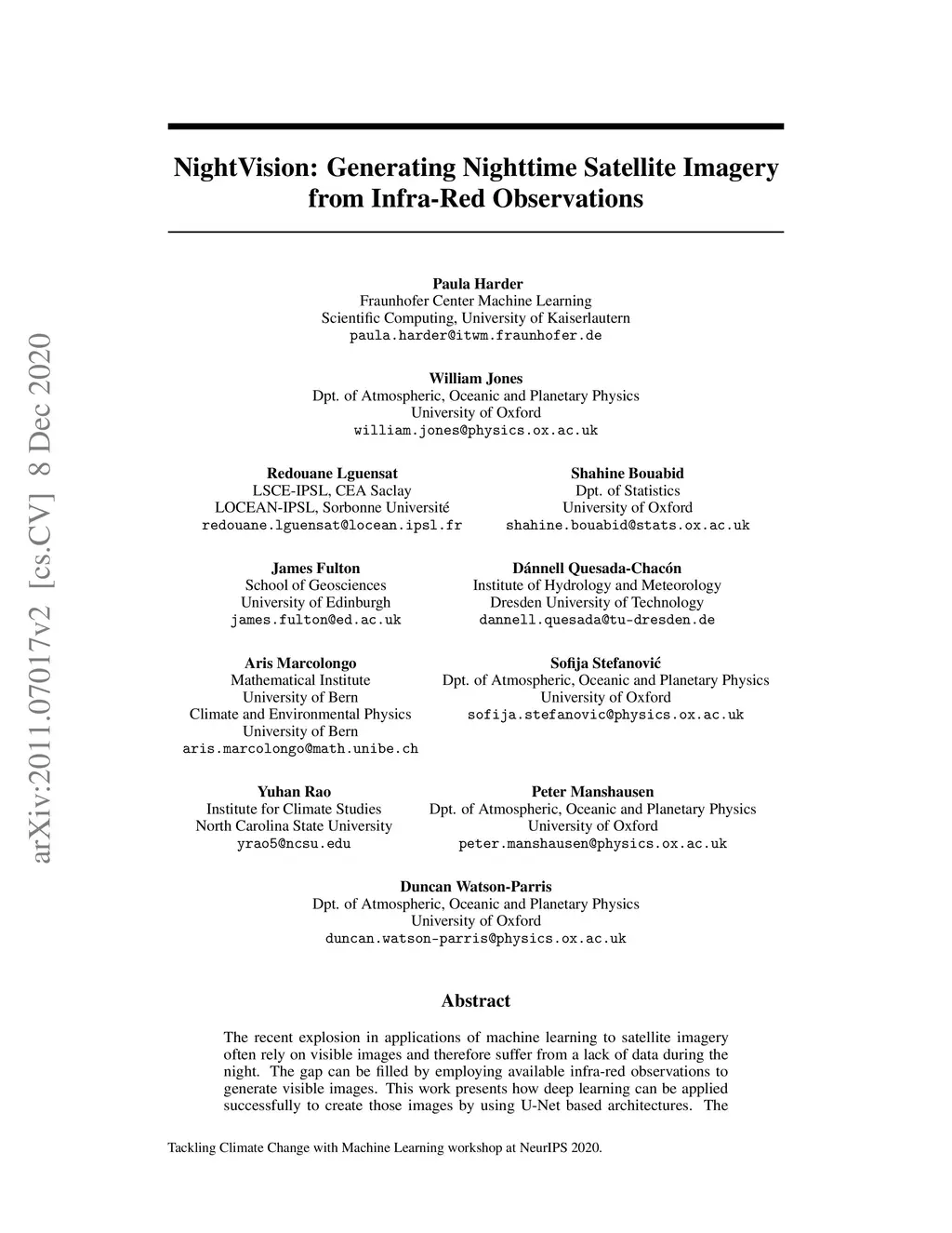 NightVision: Generating Nighttime Satellite Imagery from Infra-Red