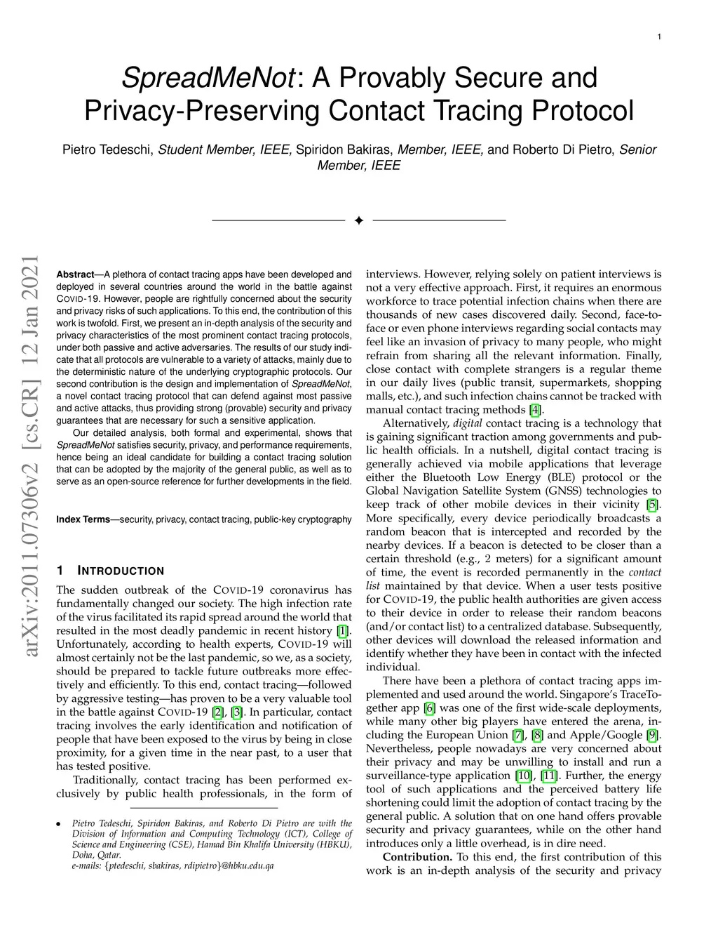 SpreadMeNot: A Provably Secure and Privacy-Preserving Contact Tracing
