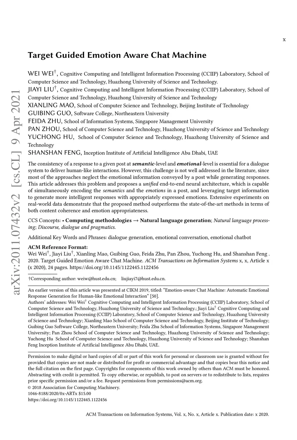 Target Guided Emotion Aware Chat Machine