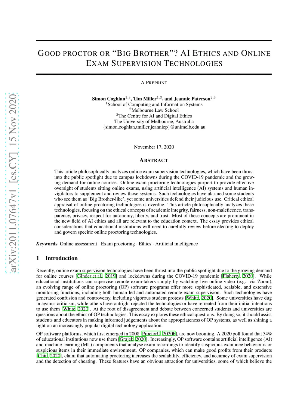 Good proctor or "Big Brother"? AI Ethics and Online Exam Supervision