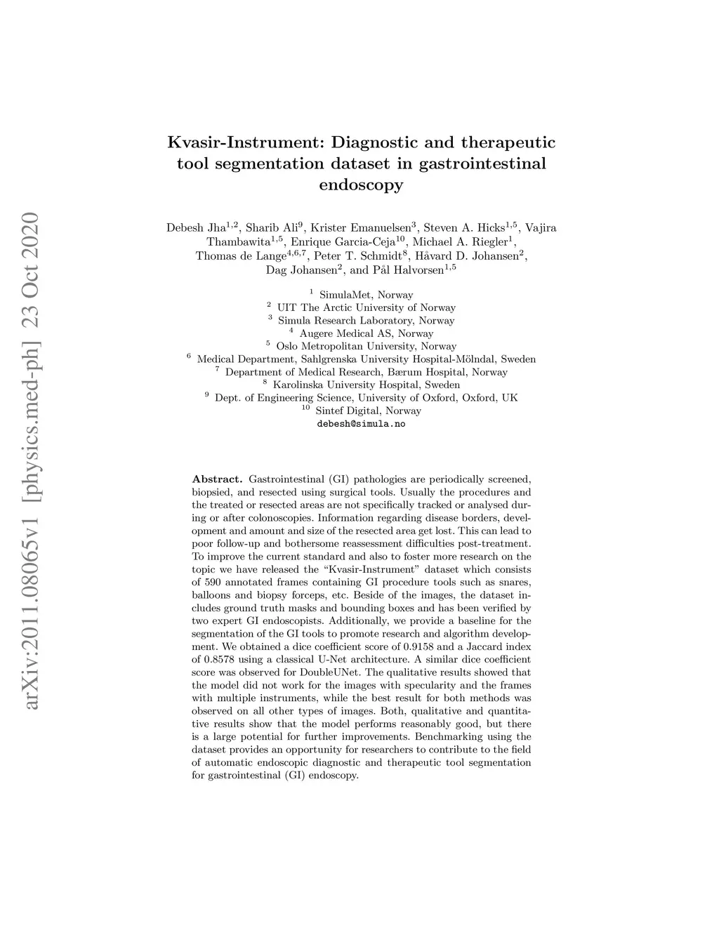 Kvasir-Instrument: Diagnostic and therapeutic tool segmentation dataset