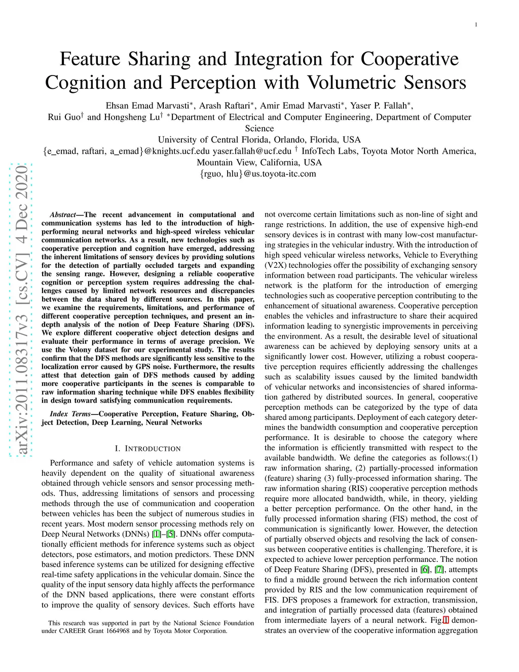 The recent advancement in computational and communication systems has led to the introduction of high-performing neural networks and high-speed wireless vehicular communication networks. As a result, new technologies such as cooperative perception and cognition have emerged, addressing the inherent limitations of sensory devices by providing solutions for the detection of partially occluded targets and expanding the sensing range. However, designing a reliable cooperative cognition or perception system requires addressing the challenges caused by limited network resources and discrepancies between the data shared by different sources. In this paper, we examine the requirements, limitations, and performance of different cooperative perception techniques, and present an in-depth analysis of the notion of Deep Feature Sharing (DFS). We explore different cooperative object detection designs and evaluate their performance in terms of average precision. We use the Volony dataset for our experimental study. The results confirm that the DFS methods are significantly less sensitive to the localization error caused by GPS noise. Furthermore, the results attest that detection gain of DFS methods caused by adding more cooperative participants in the scenes is comparable to raw information sharing technique while DFS enables flexibility in design toward satisfying communication requirements.