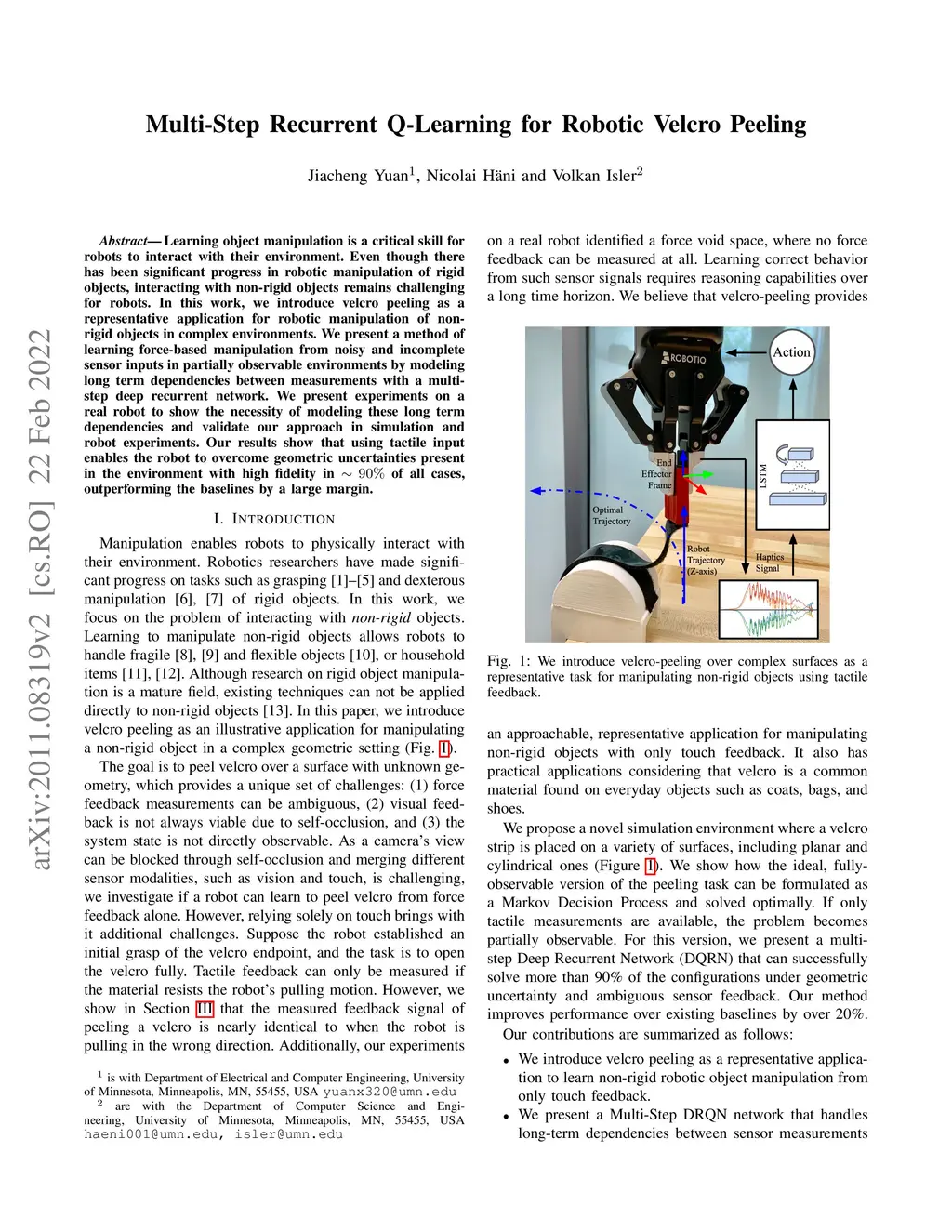 Multi-Step Recurrent Q-Learning for Robotic Velcro Peeling