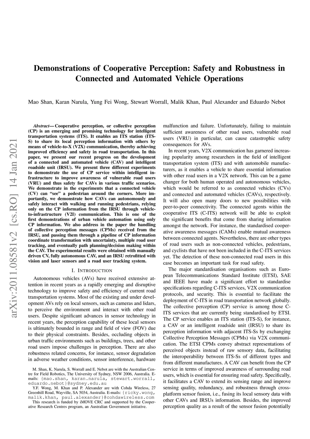 Demonstrations of Cooperative Perception: Safety and Robustness in