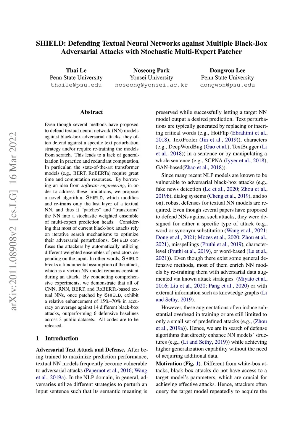 SHIELD: Defending Textual Neural Networks against Multiple Black-Box