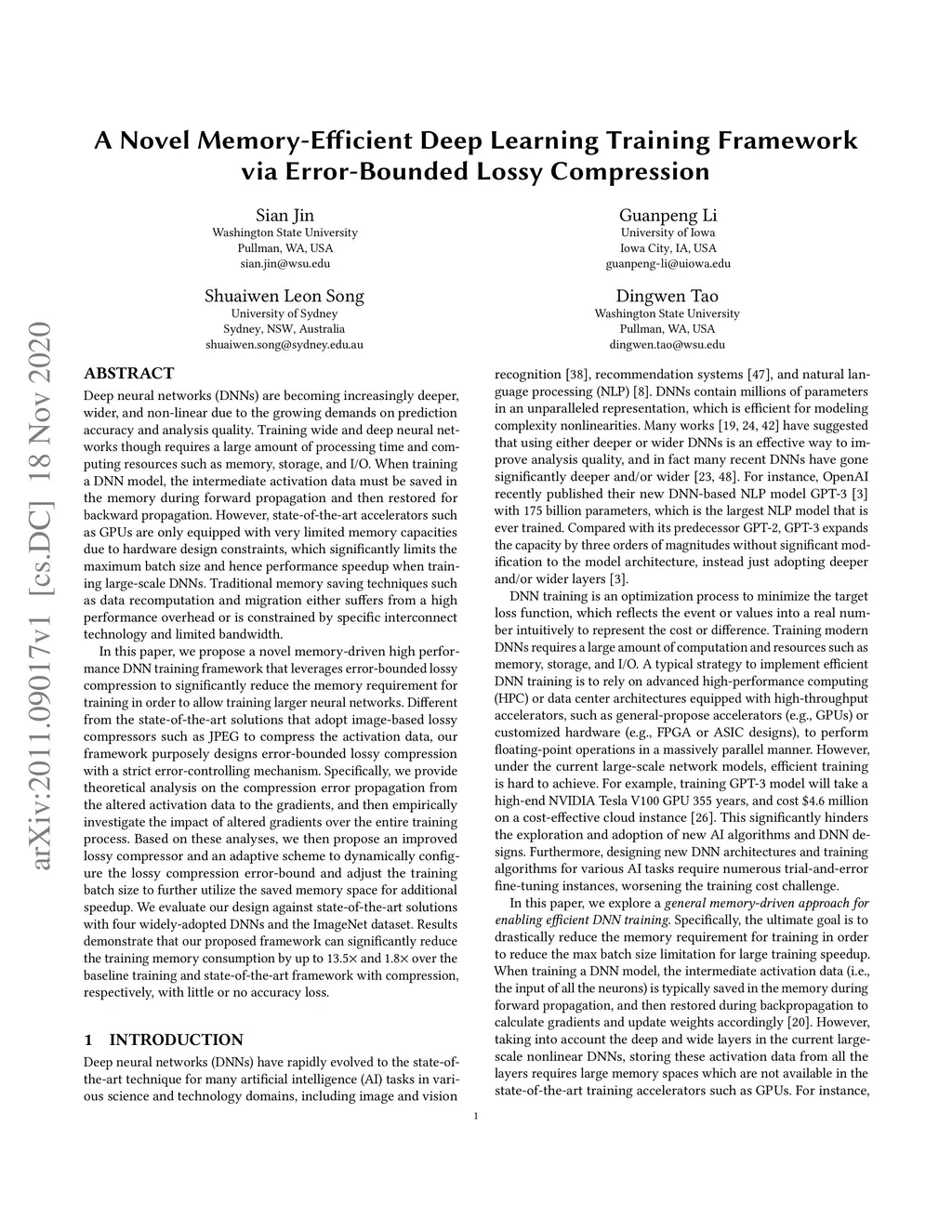 A Novel Memory-Efficient Deep Learning Training Framework via