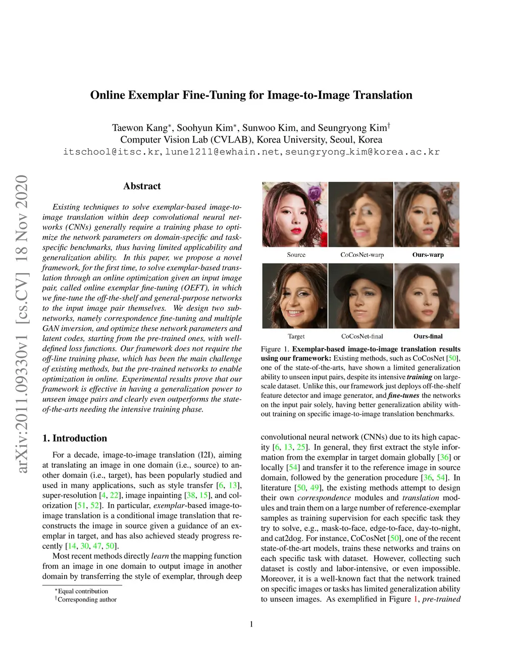 Online Exemplar Fine-Tuning for Image-to-Image Translation