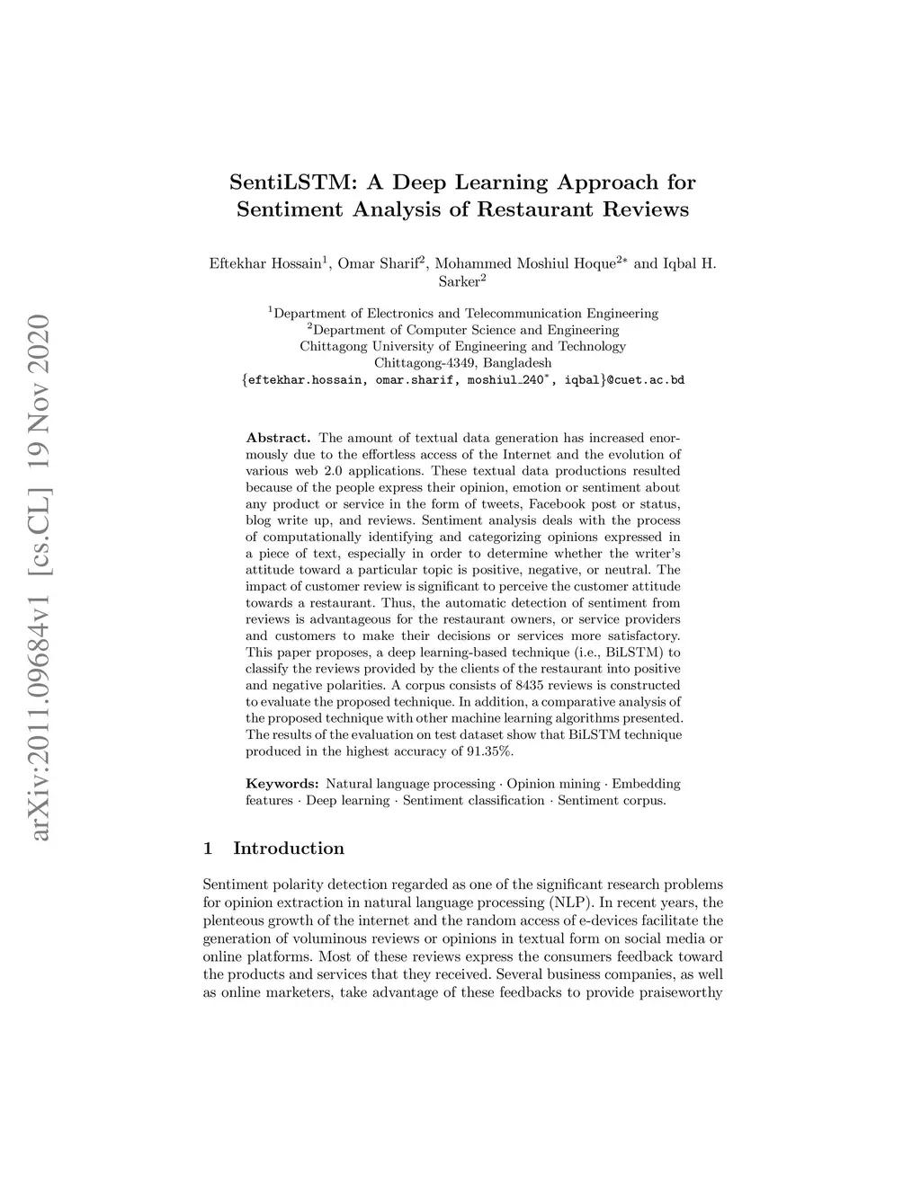 SentiLSTM: A Deep Learning Approach for Sentiment Analysis of Restaurant