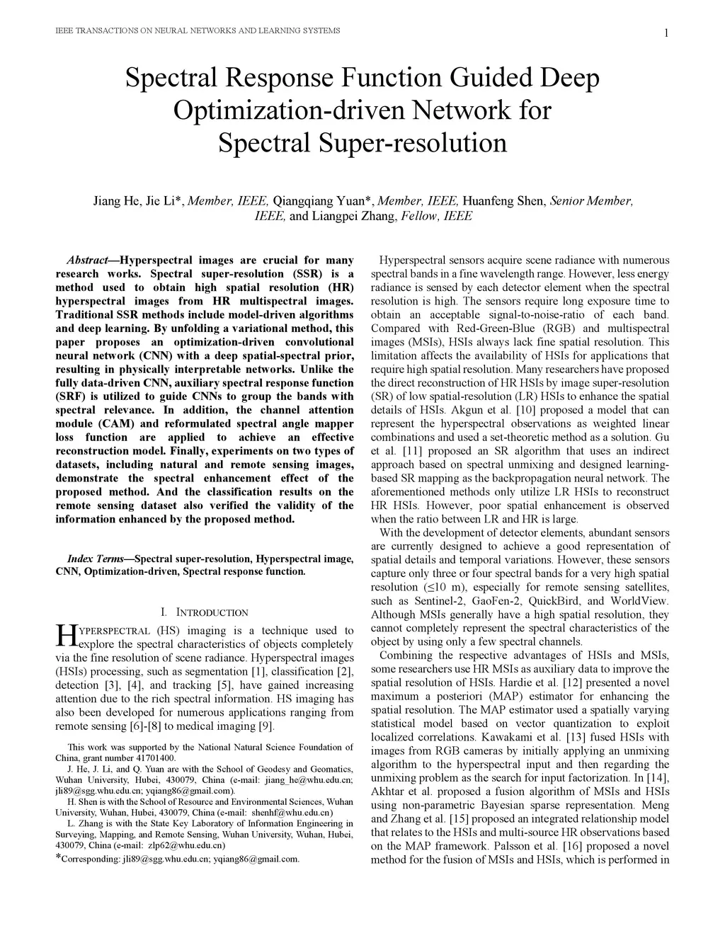 Spectral Response Function Guided Deep Optimization-driven Network for